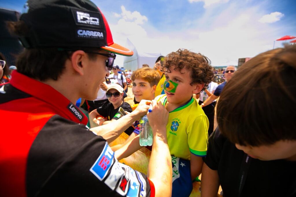 Os pilotos da MotoGP empolgaram o público (148,384 pessoas) nos três dias do GP do Brasil – 20, 21 e 22 de março – no autódromo Ayrton Senna, na capital de Goiás. Se o heptacampeão mundial Marc Márquez arrasou com uma bela vitória na sprint, sábado, o italiano Marco Bezzecchi dominou o GP e foi o primeiro a cruzar a linha de chegada. A Aprilia fez a dobradinha, com o espanhol Jorge Martin em 2º. O italiano Fabio Giannatonio, com Ducati (VR 46 Racing) completou o pódio. Diogo Moreira, LRC Honda, foi o 13º. Bezzecchi, votado como o ‘Piloto da Prova’, é o novo líder do campeonato e a Aprilia domina a classificação de construtores. No próximo domingo, a MotoGP corre em Austin, Texas, na disputa do GP dos Estados Unidos, a 3ª etapa da temporada.